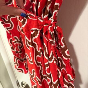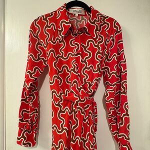 Diane Von Furstenberg Red and White Long Sleeve Dress