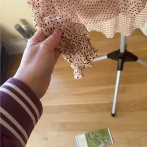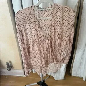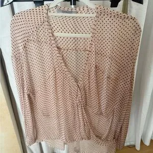 Stylish sheer blouse with polka dots. Soft pink hue. Ideal for layering. Very gently worn and in good condition. From a pet and smoke free home