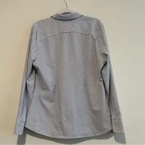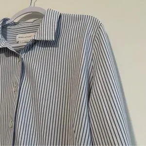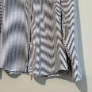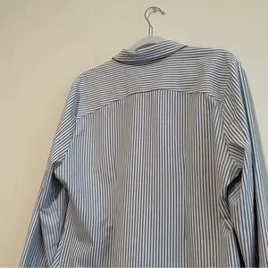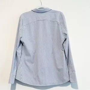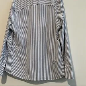 Ministry of Supply Women's White and Blue Striped Button-Down Shirt