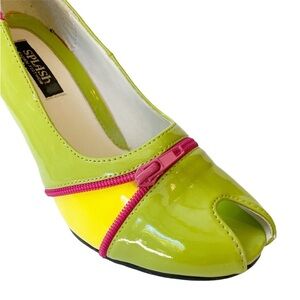 Vintage Y2K Splash Neon Zipper Peep Toe Heels Size 6.5