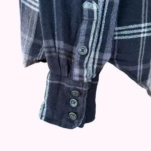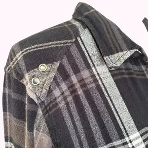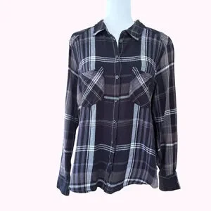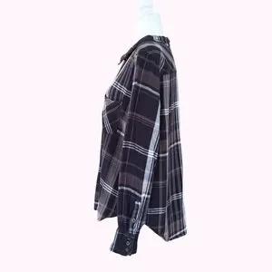 Free People Wesley plaid button down top in black and grey. Long Sleeve. Cotton & linen blend for breathability. Two chest pockets.