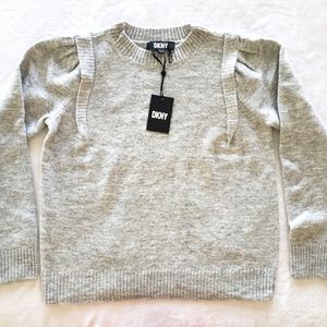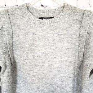 DKNY Long Sleeve Puff Shoulder Heather Gray Sweater--L