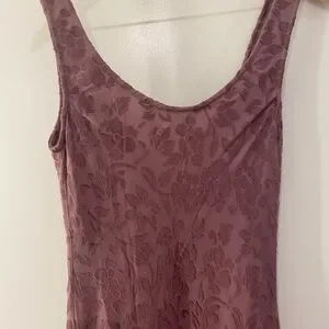 Step out in style with this elegant sleeveless dress. Perfect for any occasion, this mauve dress offers a sophisticated look. Pair it with your favorite accessories for a complete ensemble. Worn only once, in great condition. Burnt velvet design, perfect for a fall wedding guest dress.