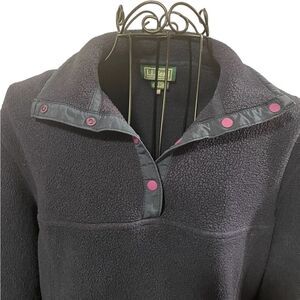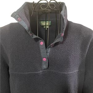 Vintage LL Bean Snap Pullover Fleece Blue Sweater Sweatshirt Women Size Medium