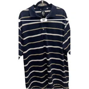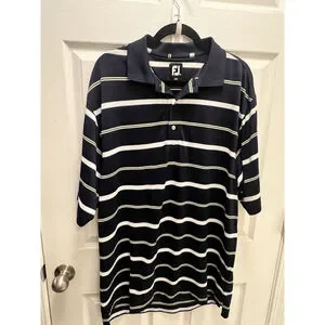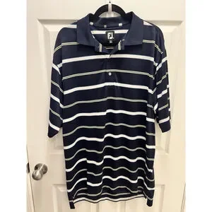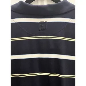 FootJoy FJ Golf Polo Shirt Stretch Men's Size Large Blue Yellow White Striped