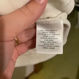 Maeve by Anthropologie striped top. Stripes are gold, silver, and a blend of the two. Blouse with bell sleeves. Perfect for wearing with a skirt to be dressy, or with jeans to be a little more casual.