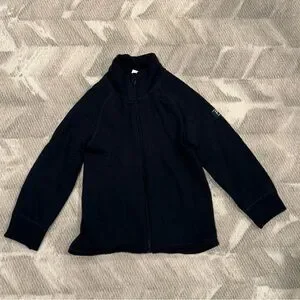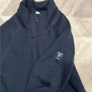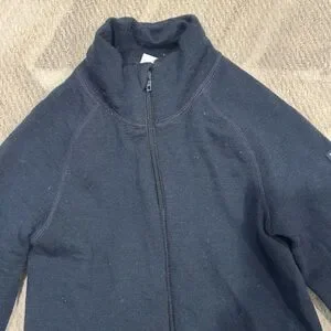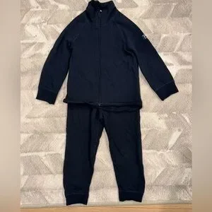 Navy long underwear set. Pants with elastic waistband and zip up top with mock turtleneck. Marino wool. Warm enough for the coldest weather.