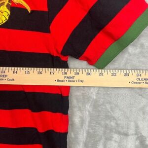 REASON Men's Red Black Striped Polo Shirt with Bee & Floral Embroidery Size L