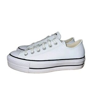 Converse Chuck Taylor All Star Clean White Leather Platform 561680C Sz 8.5 #1383