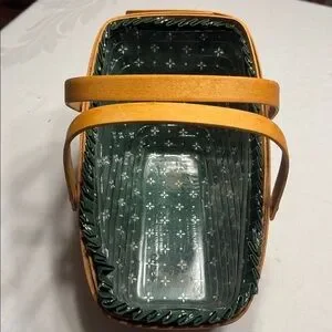 This is a Longerberger, in like new condition, Holiday handled Sleigh basket with liner & plastic insert. 1995. It measures 12 1/2” long, 7” wide, 8” high in back & 3 1/4” in front.