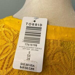Torrid Boho Babydoll Swiss Flutter sleeve yellow top . New with tags . No damage Smoke free home Pet friendly