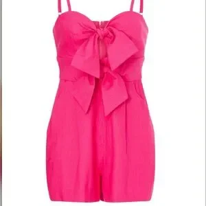 Milly Anya Linen Pink Bow Front Romper Size 10