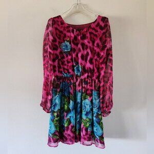 MARC JACOBS | 100% SILK dress Floral Sheer Sleeves Magenta Pink Blue Roses Sz 6