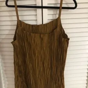 Eileen Fisher bronze pleated camisole. Designed with Eileen Fisher’s signature minimalist aesthetic and fluid drape, this offers an elegant, relaxed silhouette with beautiful movement.