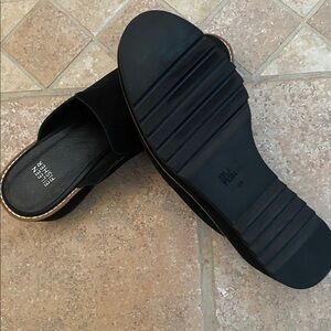 Eileen Fisher Mules Womens Size 9.5 Black Loti Suede Nubuck Clogs Shoes Wedge
