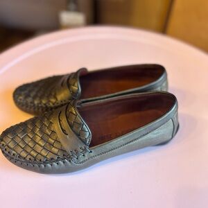 ROBERT ZUR Petra Woven Leather Driving Loafers Moccasin Shoe Womens 6.5 Pewter