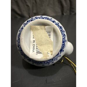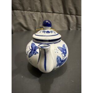Vintage Miniature Mini Teapot Ornament Blue White Porcelain Floral Butterfly 3"