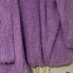 Soft and plush lavender teddy jacket. Perfect for warmth and style.