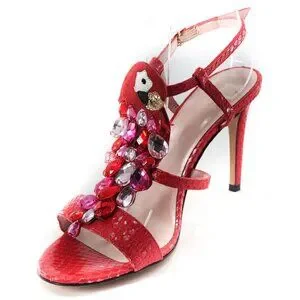 KATE SPADE Idalou Parrot Embellished Sandal Snake Embossed Leather Slingback Beaded Glitter Rhinestones Animal Print Open Toe Buckle Closure Stiletto Heel Wedding Going Out Evening Cocktail Special Occasion Party Holiday
