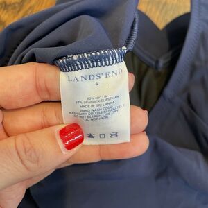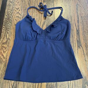 Lands End Solid Navy Blue Halter Tankini Ruffled Swimsuit Top Size 4.