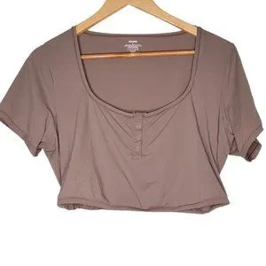 Skims Plus 3X Brown Henley Women's Cropped Top Short Sleeve