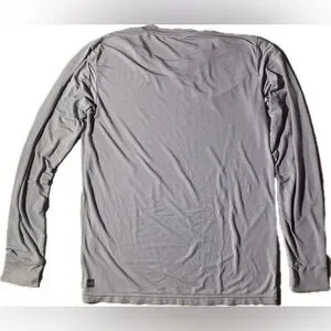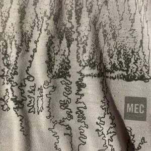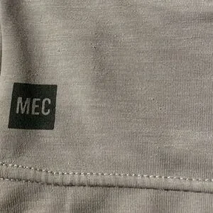 Merino Blend MEC gray long sleeve with mountain graphic. Ideal for outdoor adventures.