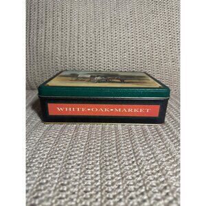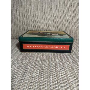 Vintage White Oak Market Tin Storage Box Nostalgic Horse Drawn Wagon Decor