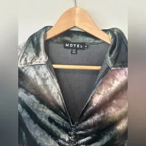 MOTEL x IRIS Aviva Y2k Mini Dress Velvet Ruched Abstract Camo medium 1290