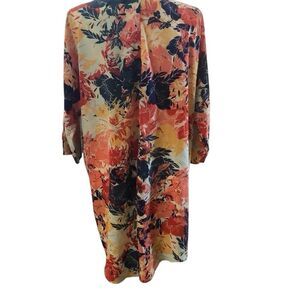 Great fall colors in this flyaway kimono/ cardigan. Beautiful with jeans or leggings. Easy care. In new condition without tags.