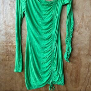 Camila Coelho Green Lena Mini Dress Asymmetrical Ruched Long Sleeve Dress