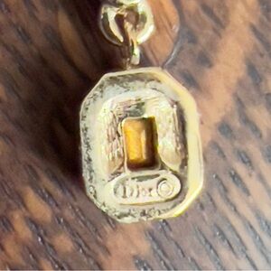 Gorgeous Christian Dior goldtone necklace in excellent condition. Beautiful “topaz” and “garnet” glass stone pendant on a long rope chain. . No fading. Stamped DIOR