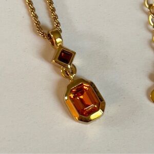 Christian Dior Elegant Garnet/Topaz Gold Drop Necklace