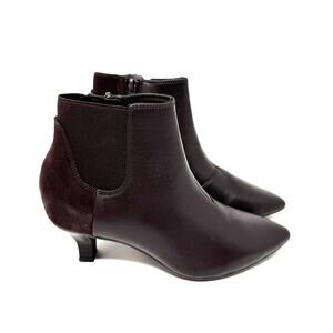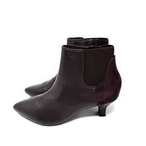 Sleek ankle-boot with a pointed toe and elevated look — perfect for work or date nights. Premium leather upper with stretch panels for easy on/off, plus a side zipper for convenience. “Ultimate Comfort” foam footbed cushions your step, paired with a flexible TPR outsole for stability and traction.