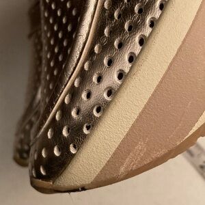 Stylish gold loafers. Perforated design. Comfortable flat sole.