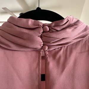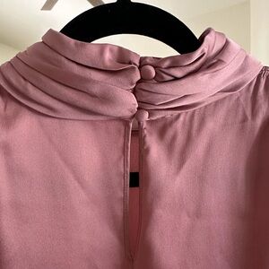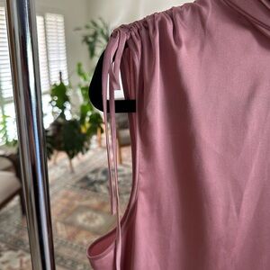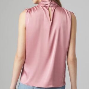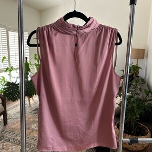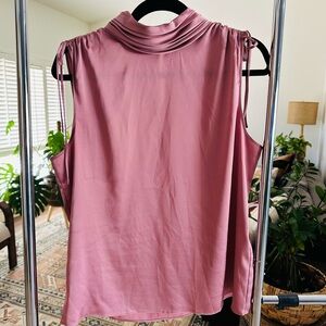White House Black Market Pinkish Mauve Satin Sleeveless Blouse. Chic satin blouse with a mock cowl neckline,and ruched shoulder ties. Sleeveless. Perfect for a versatile stylish look. Size L