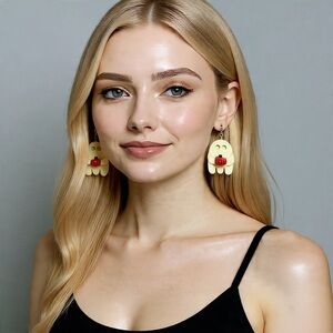 Get into the spooky spirit with these Ghost Holding a Pumpkin Earrings! Handcrafted with a glossy white finish and tiny pumpkin accents, these adorable ghosts are ready for Halloween fun. Their cute, not creepy, design makes them perfect for adding a festive touch to any outfit — whether you’re celebrating the season or just love charming, ghostly accessories. Includes: 1 pair of earrings Size: Approx. 2 1/2inches in height Weight: Approx. 12g per pair Condition: Brand new, handmade Color: Bright white ghost with orange pumpkin and green stem details Features & Details: Glossy finish with detailed pumpkin charm. Lightweight and comfy for everyday wear or spooky season outings. Material: Polymer clay, resin, and copper-plated silver (earring hooks) Additional Details: Hypoallergenic hooks—great for sensitive ears. 🖤 Please Note: Due to the handmade nature of this item, each item may have slight variations in shape, surface, or resin finish — making your set one-of-a-kind. Like the item not the price? We accept offers! 📲Have questions? We’re available 24/7 📦 Made to order – please allow 3–5 business days before shipping 🎁Mini gifts with every order!🎁 (The higher the price the bigger the gift) 💔Any defects will be shown in images if present 🚭Smoke Free Home! 💭Can’t decide? Browse our other listings to find just what you’re looking for.