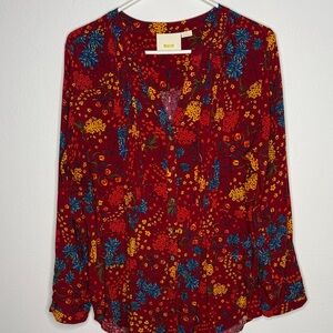 Beautiful Anthropologie Maeve Red Floral Blouse in excellent, like-new condition — worn only once! 🌺
