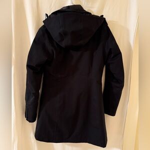 Sleek and warm 3 in 1 parka is versatile and functional from rain to snow. The shell is waterproof and breathable. It features a two way full zip closure with a storm flap secured by concealed snaps to keep the cold at bay. It also has an adjustable snap off hood for added warm warmth and a tall zip stand-up collar that can be opened and flattened. It has an internal chest pocket and convenient hand warmer pockets. The puffer parka incorporates 700 fill power recycled down insulation.