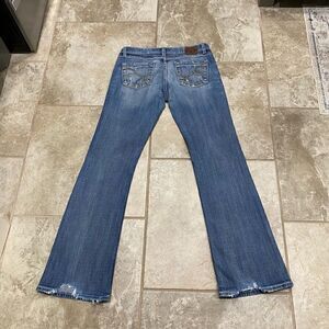 BKE 28x31.5 Stella Stretch Low Rise Distressed Bootcut Denim Jeans