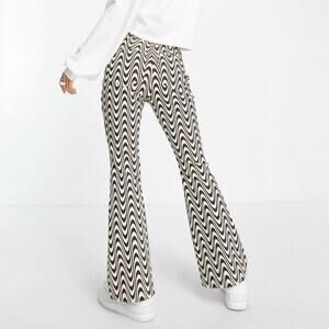 New Top Shop Pants Bengaline Flare Wavy Print Stretchy High Rise Women's 10