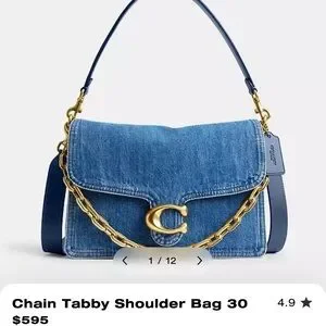 Coach Tabby 30 Denim Crossbody Bag with Gold Chain