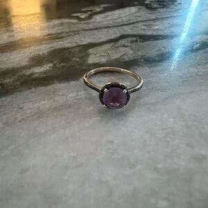 Stunning rose gold ring featuring a vibrant Amethyst gemstone and black diamonds. Perfect for elegance and style.