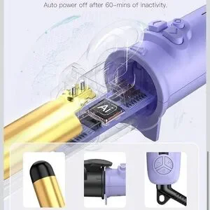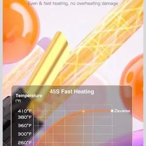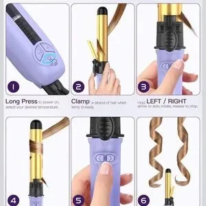 Auto-rotating curling iron that gives easy, effortless curls with no tangles. Heats up fast, has 5 heat settings (260–410°F), swivel cord, and dual voltage so it’s great for travel. Titanium barrel for smooth, long-lasting curls. Safety cool tip, stand, and auto shut-off included. Perfect for quick beach waves or glam curls.