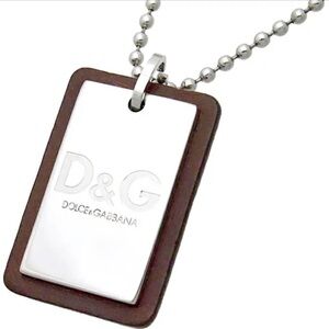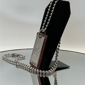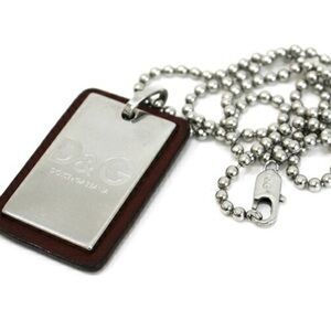 Dolce and Gabbana Ball Chain Necklace with Silver and Leather Tag Pendant. D&G at claw clasp closure. Unisex. EUC. Chain~22” long. Pendant ~1”L x .5”W.
