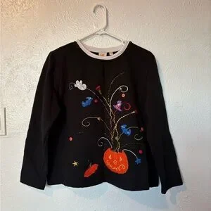 This elegant vintage black Halloween women's sweater features vibrant embroidery, adding a playful touch to your wardrobe.