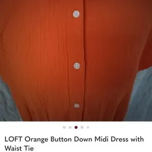 LOFT Orange Button Down Midi Dress with Waist Tie