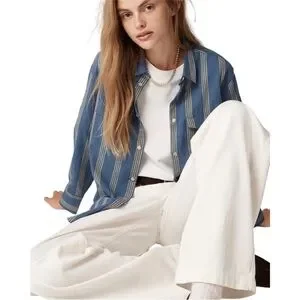 J. Crew Western style striped shirts in blue/yellow