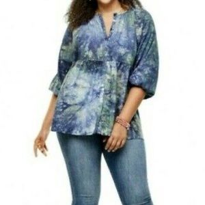 CABI Woodstock tie dye babydoll top size Medium. Linen blend