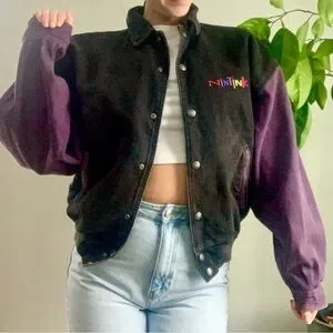 Authentic 90s denim Nintendo varsity jacket. Bold black with purple sleeves. Streetstyle. Gamercore. Button down. Side pockets. Rainbow Nintendo logo. Back of jackets graphic/ logo: “Play it loud - Nintendo”. Gorgeous vintage condition. Rare niche gamer item. Nerdcore. Size S/P. Would fit a XS-L depending on desired fit. Unisex item.