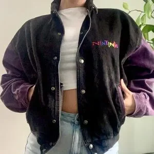 Vintage 90s Nintendo Women's Black and Purple Varsity Jacket